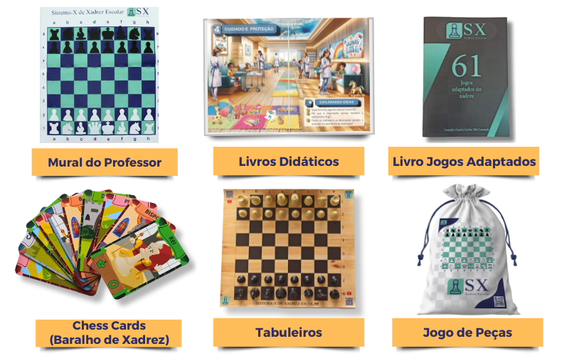 Equipamos a Escola com todo o material necessário para as aulas de xadrez com Jogos, Tabuleiros, Murais e Chess Cards.